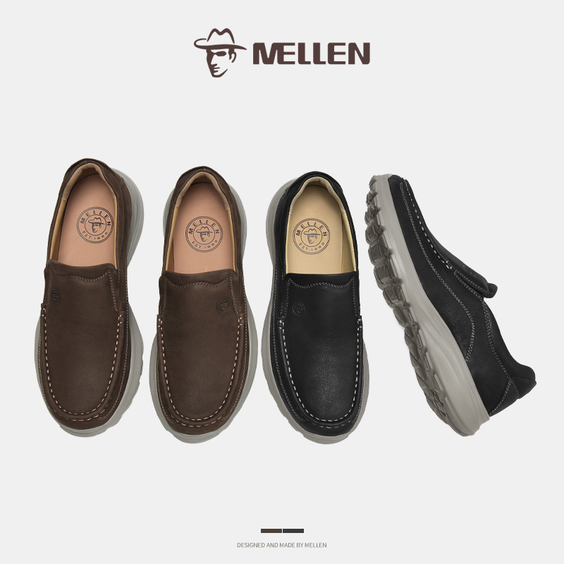 天猫MELLEN名郎男鞋新品柔软透气商务休闲皮鞋通勤百搭一脚蹬乐福鞋男