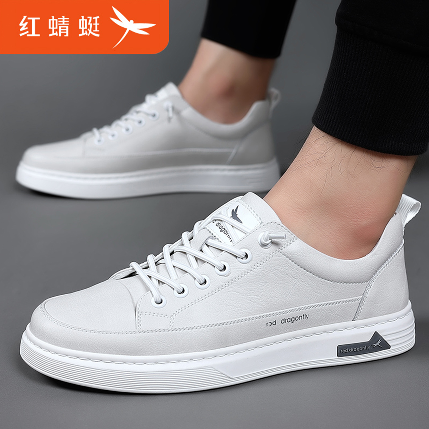 淘宝红蜻蜓男鞋春季2025新款真皮小白鞋皮鞋男士潮流百搭休闲鞋板鞋