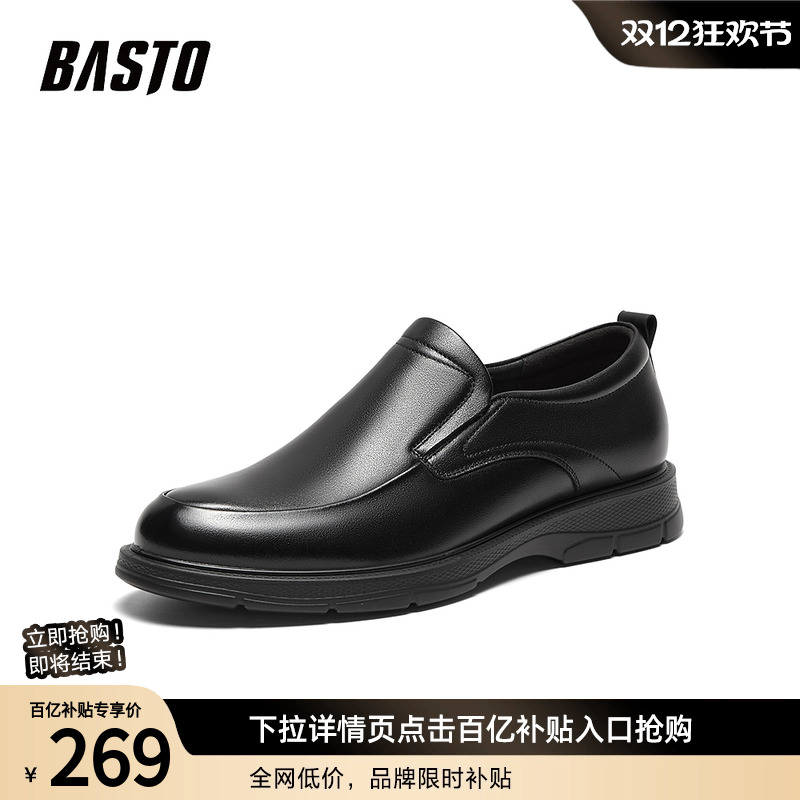 天猫百思图春秋时尚简约商务一脚蹬豆豆乐福鞋厚底男休闲皮鞋B2320AM4