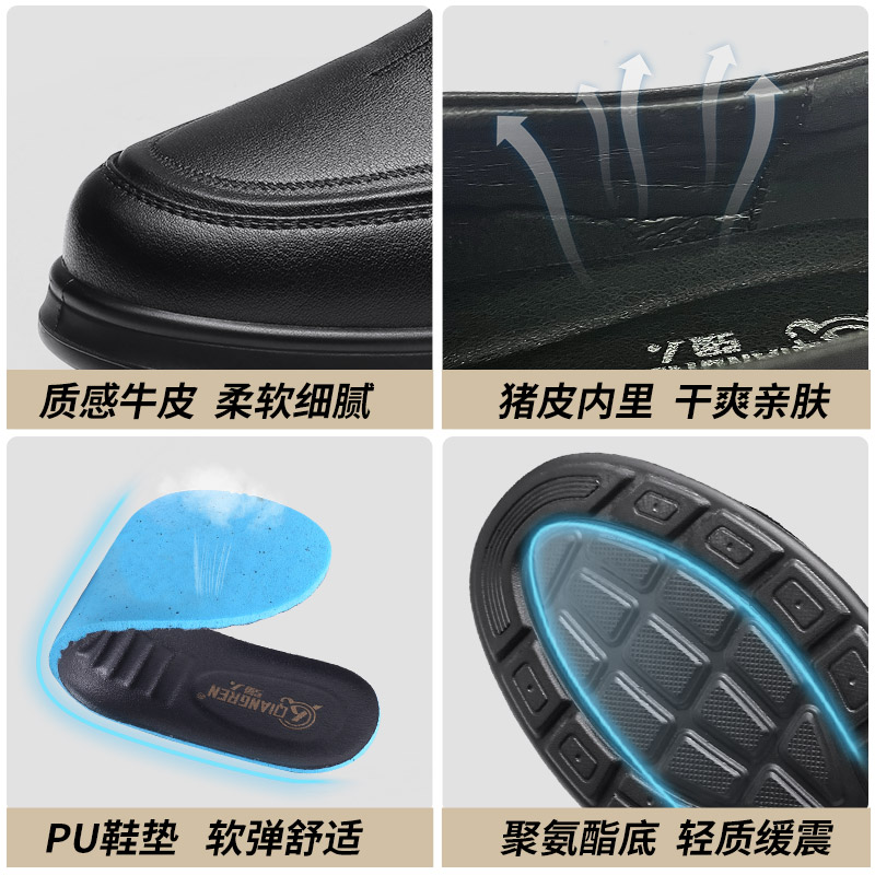 商品介绍:这款强人3515男士皮鞋选用真皮材质,透气性强,舒适耐穿。鞋子款式时尚大气,商务休闲皆可穿着。一脚蹬设计方便穿脱,软底设计有效缓解行走疲劳。这款皮鞋适合职场人士和时尚爱好者在休闲或工作中穿着,展现了高端品质和独特魅力。它以精良工艺打造出非凡体验,让你无论身处何地都能展现自信与品味。是一款理想的商务休闲鞋选择。