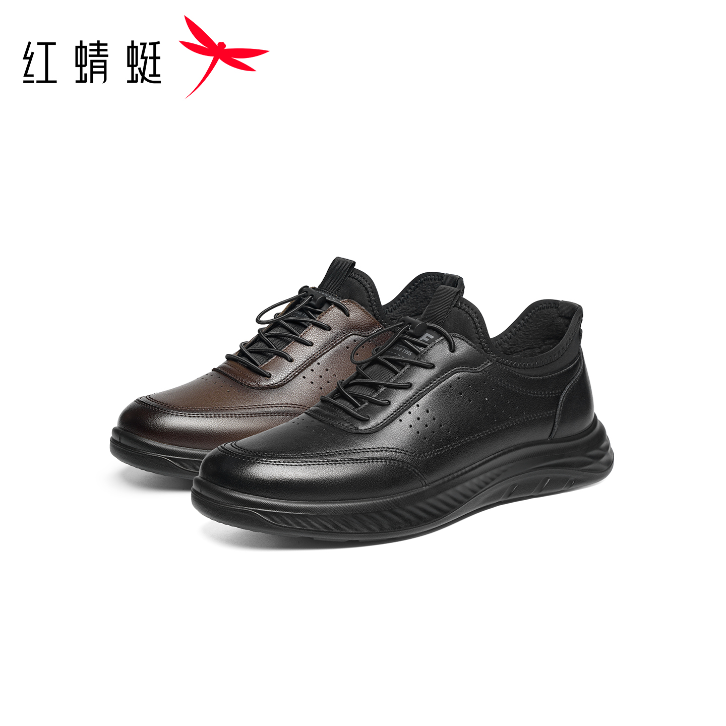 天猫红蜻蜓休闲皮鞋2025秋冬新款男鞋厚底加绒保暖运动鞋户外徒步鞋男