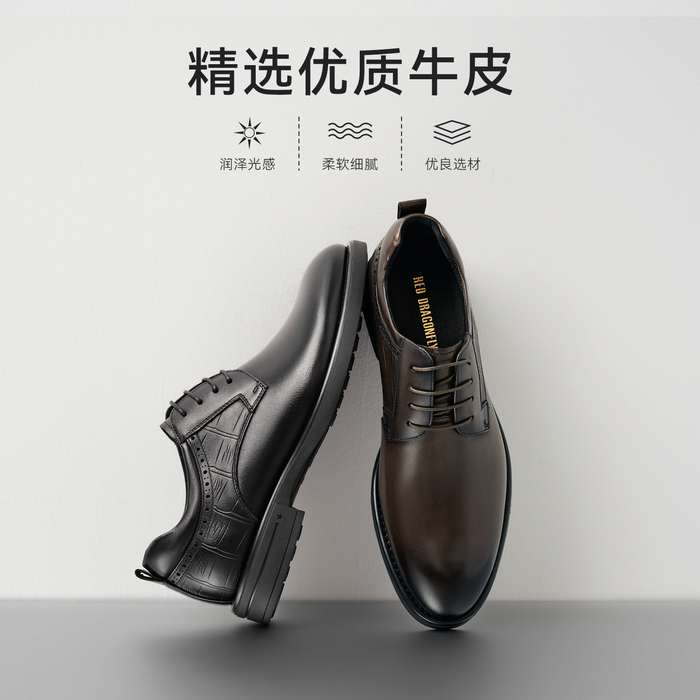 天猫红蜻蜓男鞋2025秋季新款真皮男士商务正装皮鞋高端英伦结婚新郎鞋