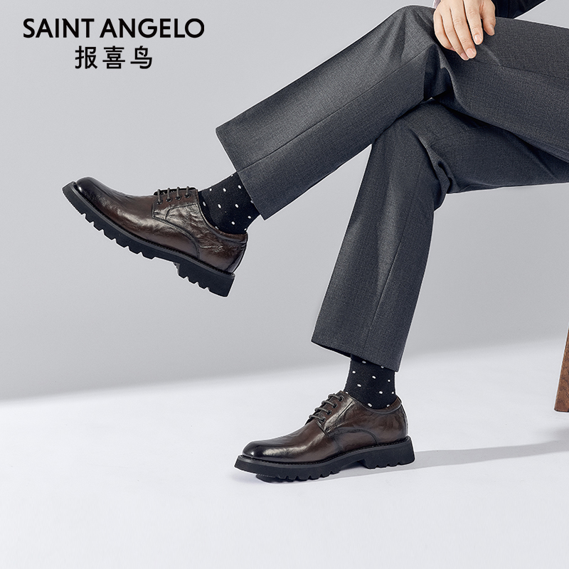 天猫报喜鸟2023秋季新款男士正装皮鞋手抓纹手工擦色真皮鞋时尚厚底