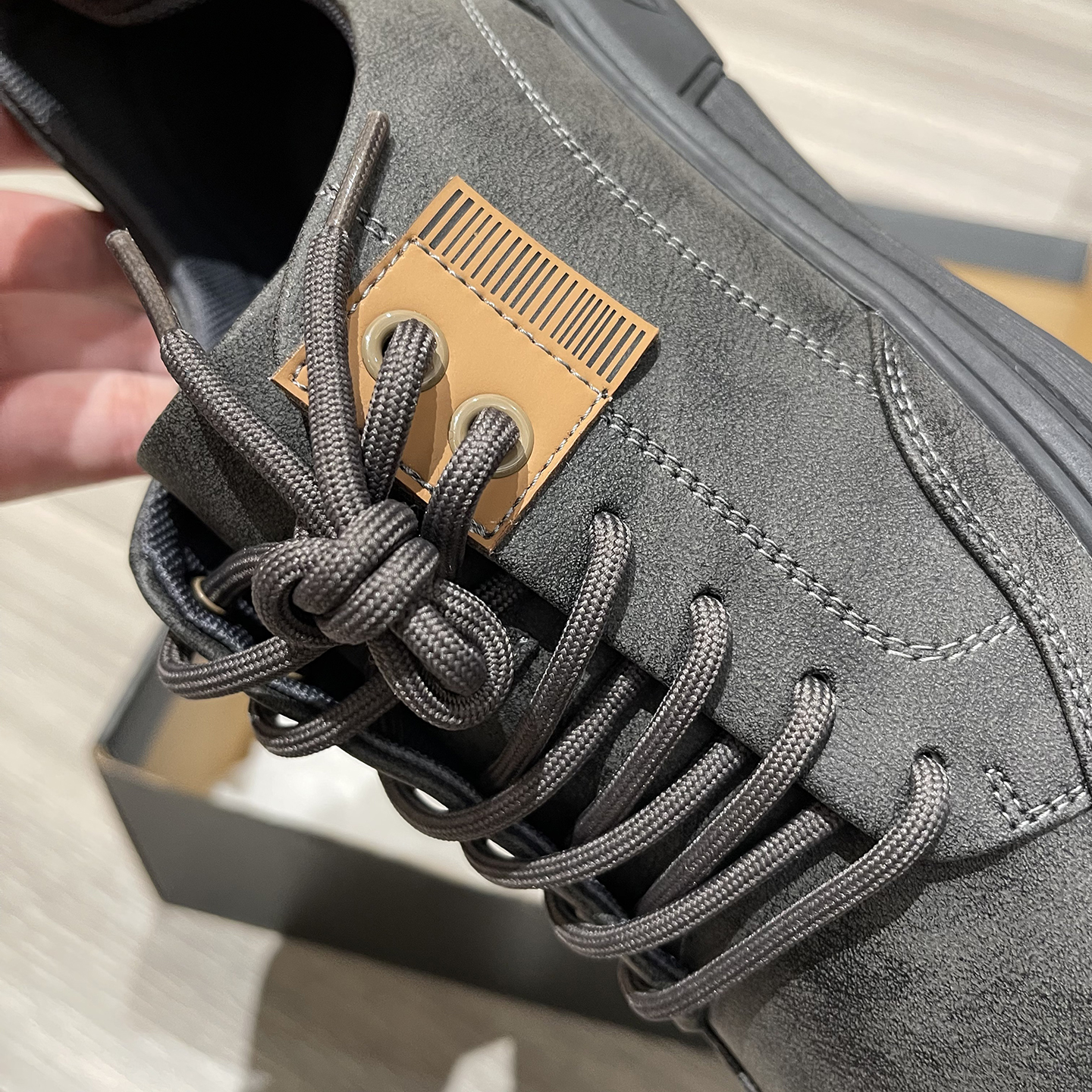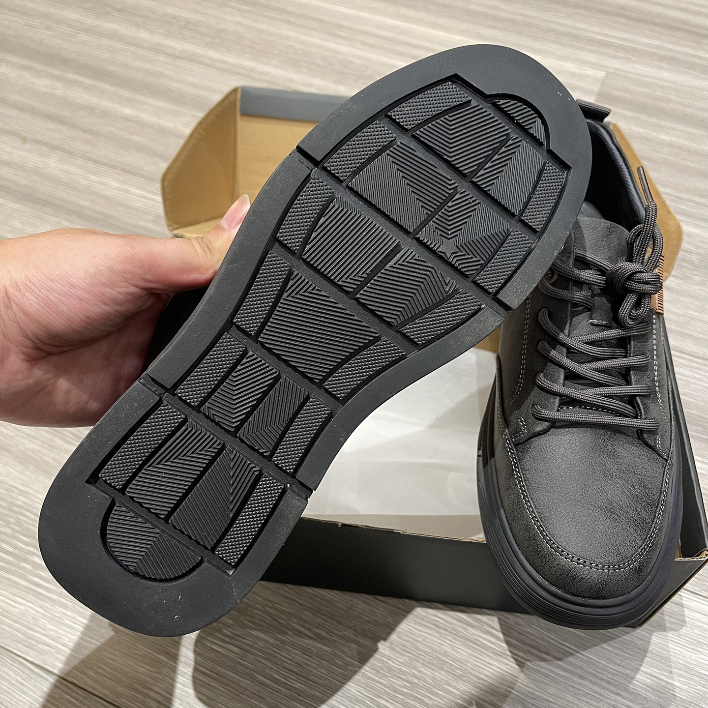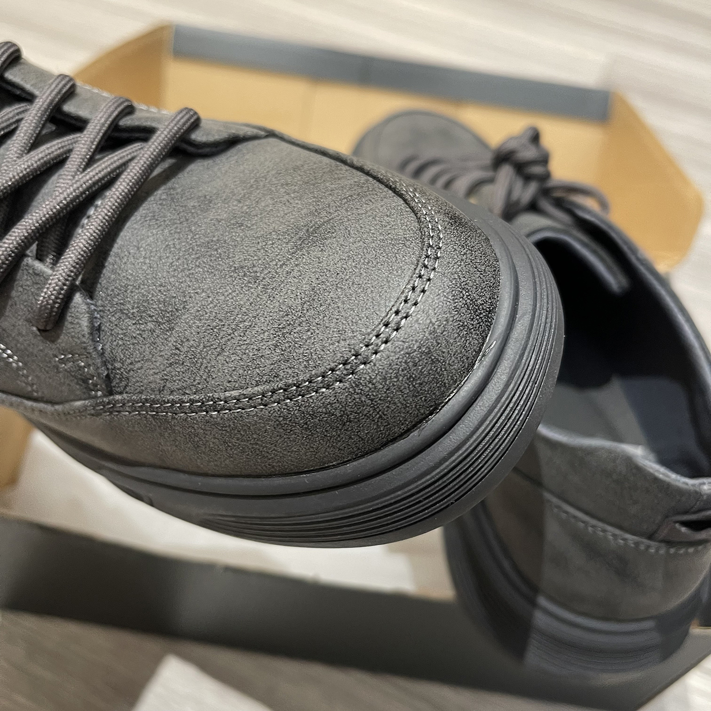 淘宝【H系】防水PU皮革!男士深灰系带休闲鞋复古质感鞋面防滑底皮鞋
