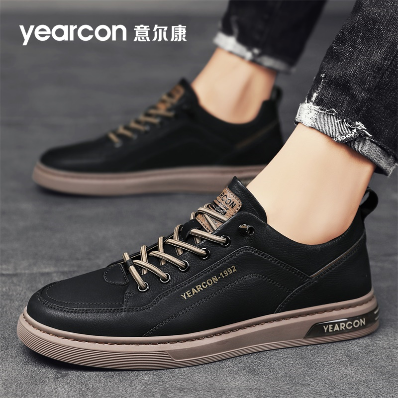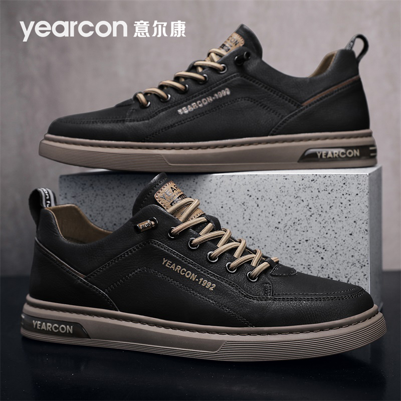 天金利来男鞋新品商务休闲皮鞋百搭系带高颜值复古真皮轻质板鞋男士