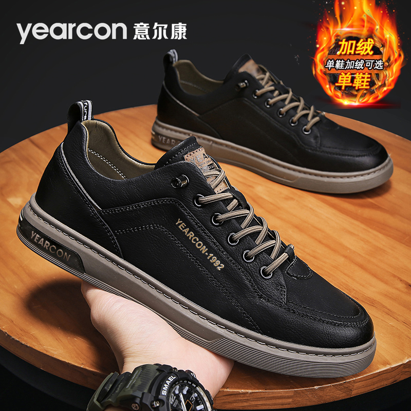 天猫意尔康男鞋2025新款秋冬季加绒保暖棉一脚蹬休闲皮鞋男士高端板鞋