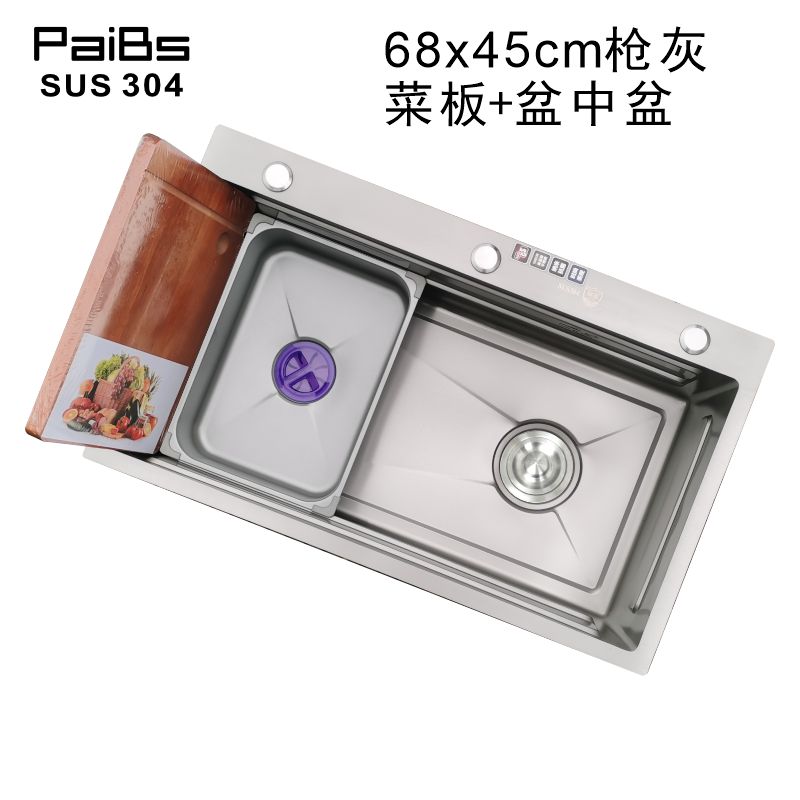 淘宝智能水槽7545不锈钢水槽黑金刚水槽单槽枪灰色套装洗菜盆厨房水槽