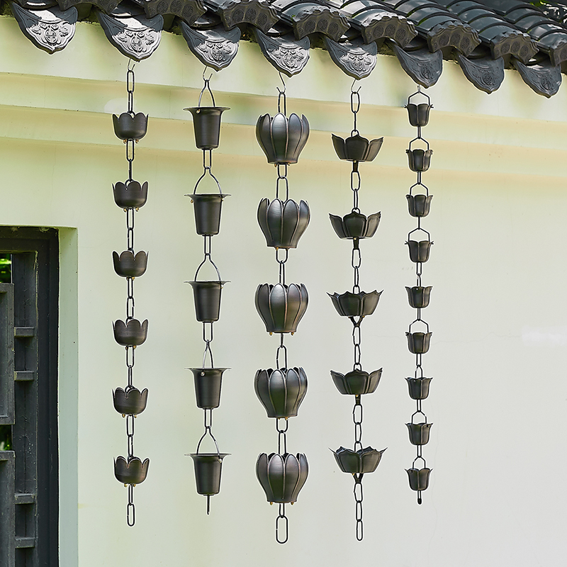 天猫别墅落水屋檐雨链天沟雨水槽庭院排水链雨水斗引水槽导水链紫全铜