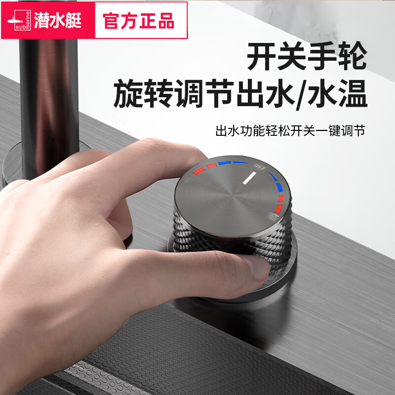 天阿萨斯升降水龙头厨房水槽冷热净水三合一枪黑色洗菜盆抽拉式龙头