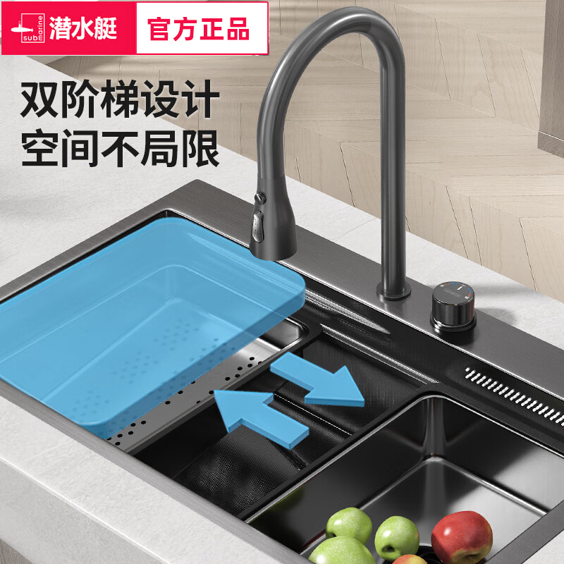 天猫潜水艇飞雨水槽304不锈钢手工槽厨房洗菜盆枪灰大单槽SGP-SD7546B