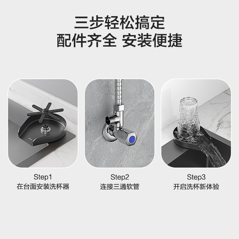 天猫九牧高压304不锈钢洗杯器厨房水槽洗菜盆咖啡奶茶店冲杯子神器