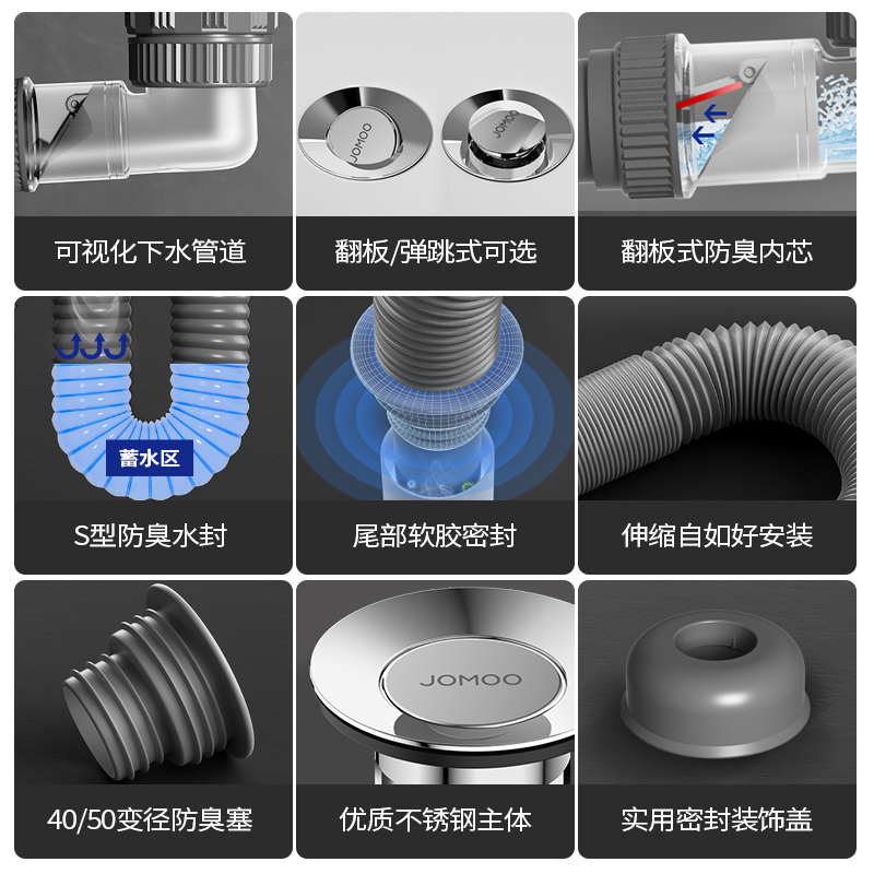 天猫九牧面盆下水器套装排水管洗手盆水池浴室柜下水管带水槽封口盖