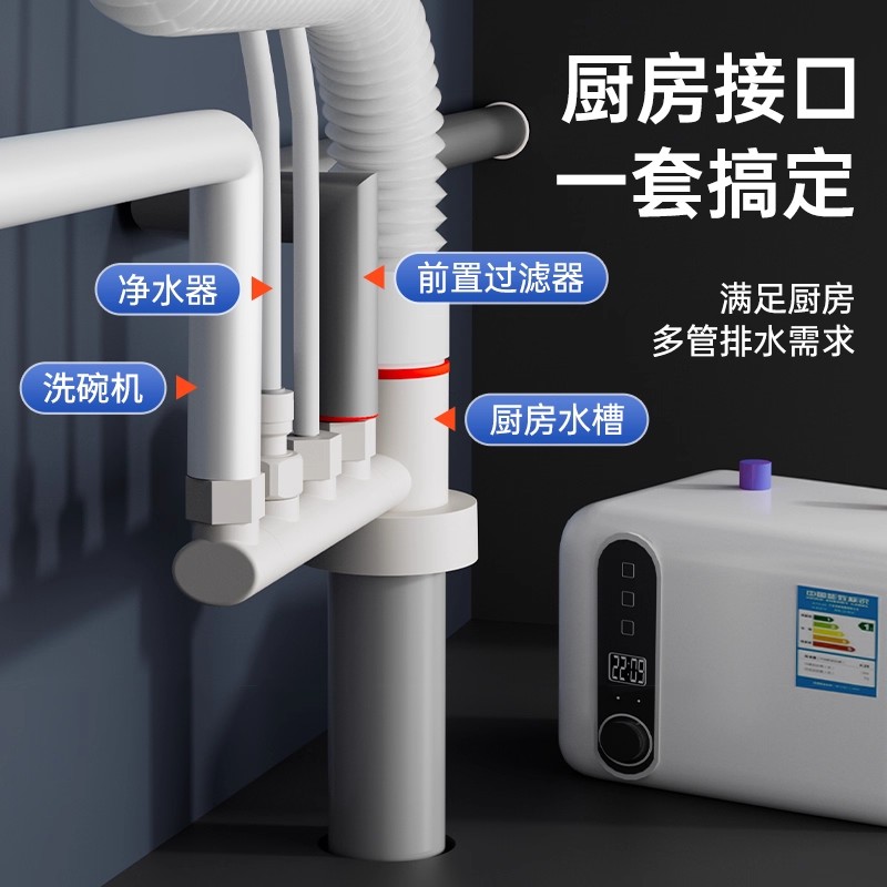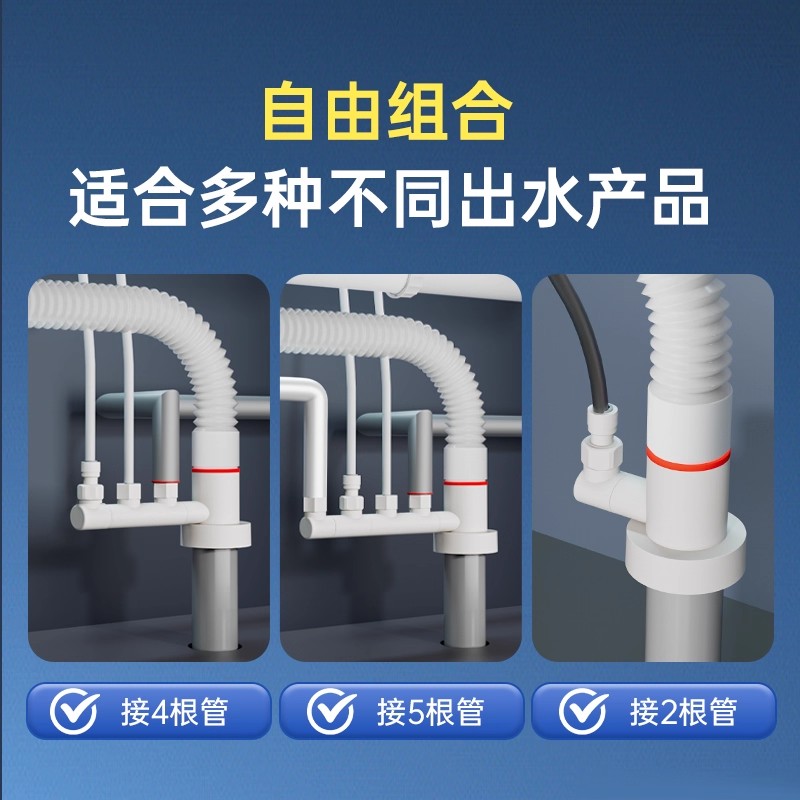 潜水艇厨房下水管三头通防反臭神器密封塞水槽小厨宝净水器接头