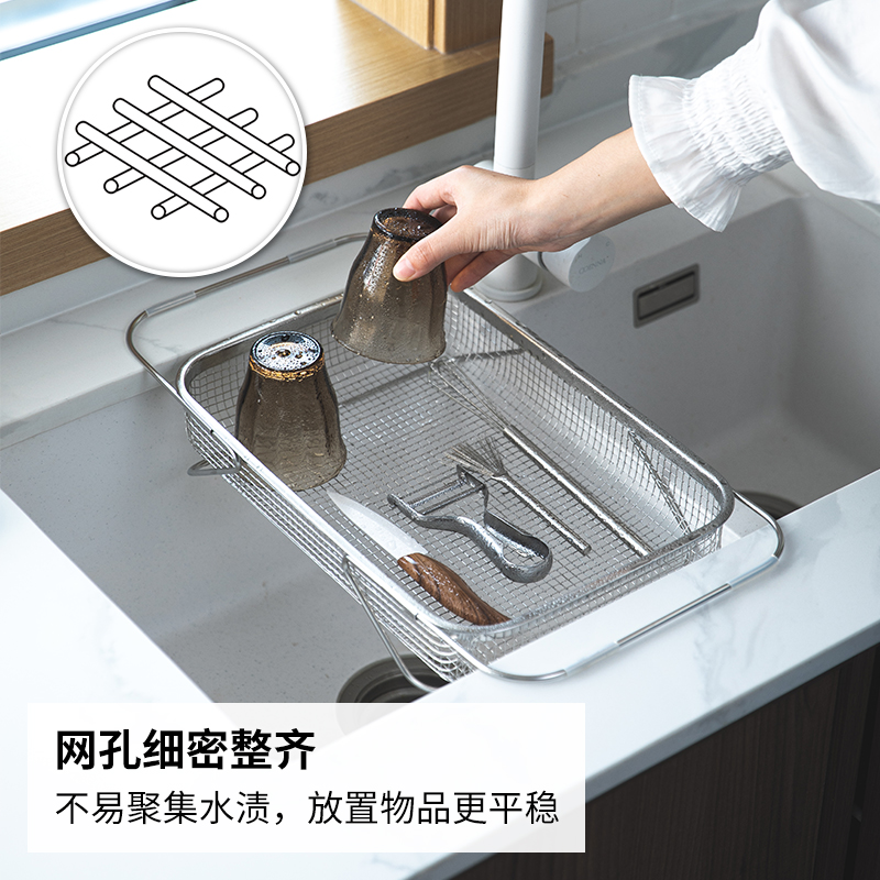 天onlycook可伸缩水槽沥水篮304不锈钢碗筷滤水架厨房多功能洗菜盆