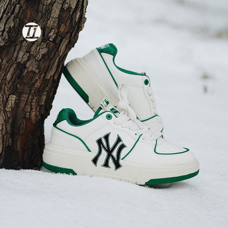 淘宝#现货 MLB Chunky liner 复古黑色板鞋男女厚底增高米色3ASXCMN4N