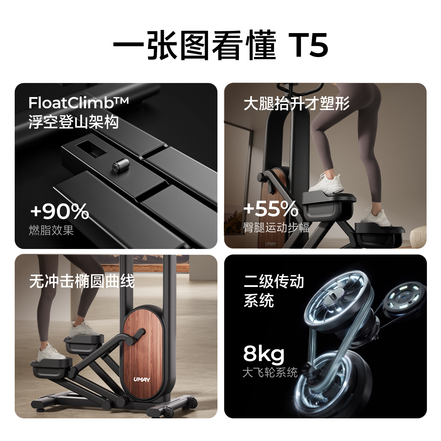 天猫佑美椭圆机T5家用登山机漫步健身房器材小型踏步爬楼机智能椭圆仪