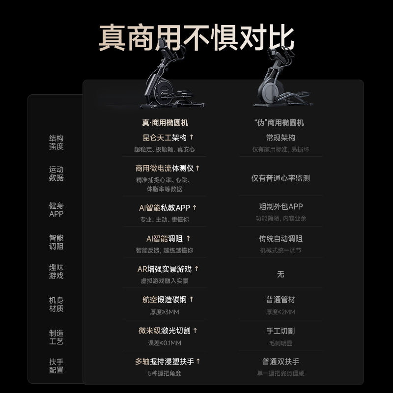 天猫麦瑞克椭圆机智能家用静音太空漫步健身房踏步商用运动器材昆仑M7