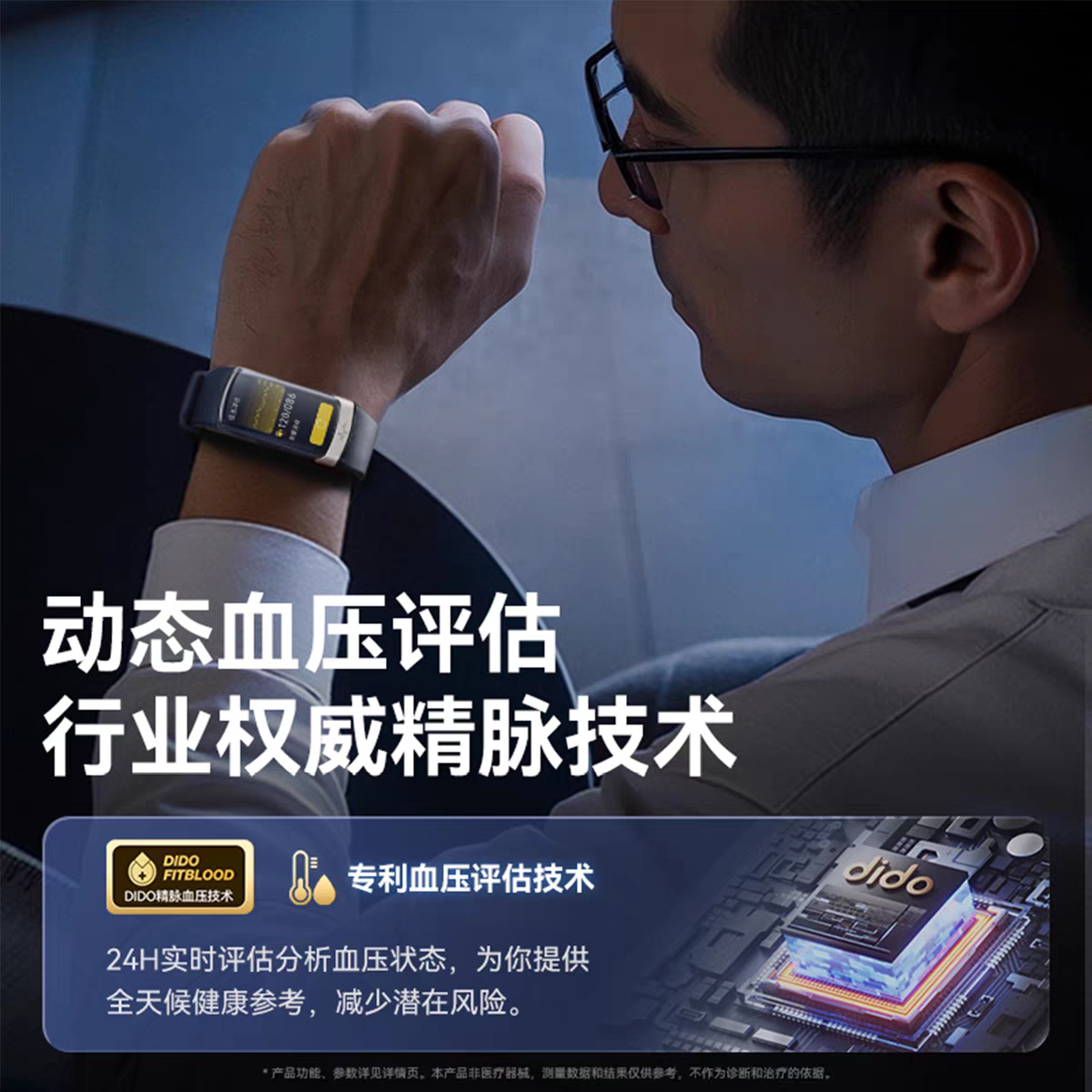 Dido智能手环F50S是一款专为老年人设计的智能穿戴设备,可实时监测血压、血糖、心率、体温和睡眠质量等健康指标。它具备运动计步功能,可以帮助老人记录和跟踪日常运动量。手环智能提醒,便于管理健康和日常生活,防止错过重要事件或紧急情况。操作简便直观,适用于不同水平的老人使用。时尚舒适的外观设计,让佩戴成为一种享受。Dido智能手环F50S是老人健康管理的好帮手,让您随时随地掌握健康状况,享受健康生活。