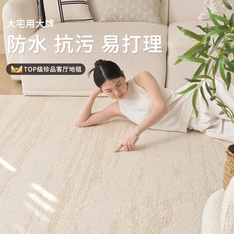 天猫地毯客厅2025新款防水防污硅藻丝奶油风免洗可擦高级轻奢卧室沙发