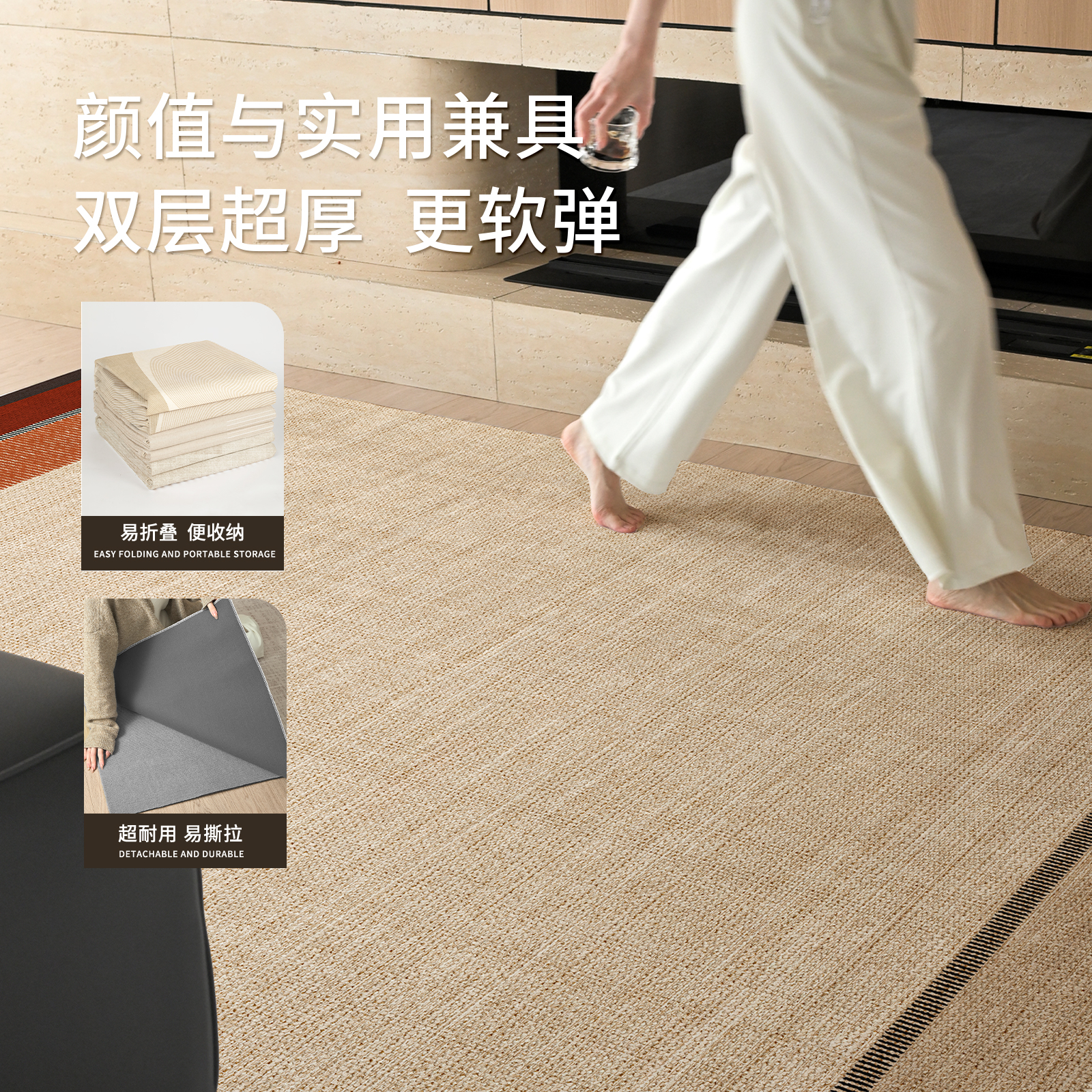 天猫可拆洗地毯客厅原木中古风2025新款高级感免洗可擦可机洗双层拆卸