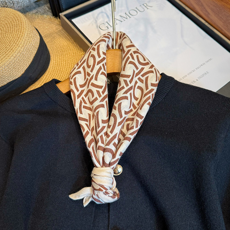 2025秋季新款护颈钻扣花朵丝巾女时尚百搭围巾纱巾多功能懒人围脖