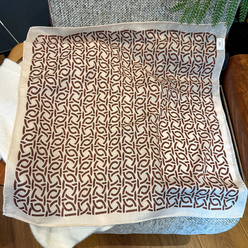 淘小众设计款法式复古绿咖色花卉真丝棉围巾丝巾领巾春秋冬韩国女