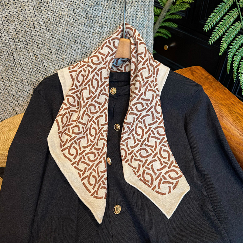 小众设计款法式复古绿咖色花卉真丝棉围巾丝巾领巾春秋冬韩国女
