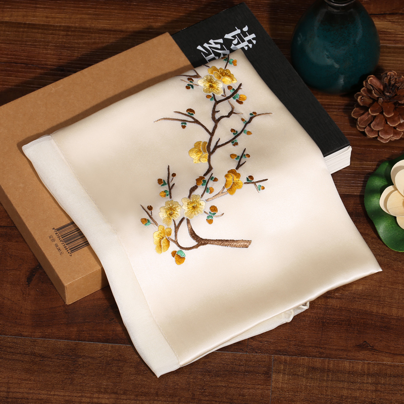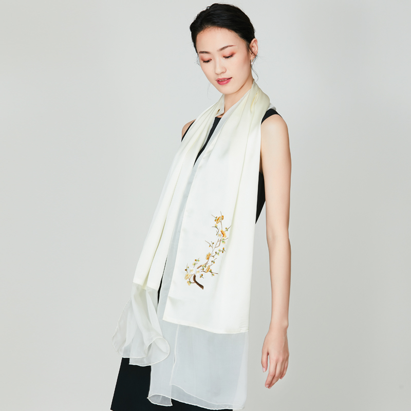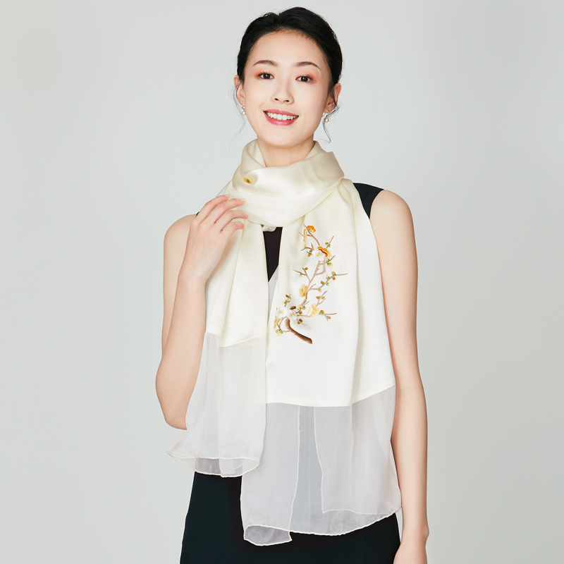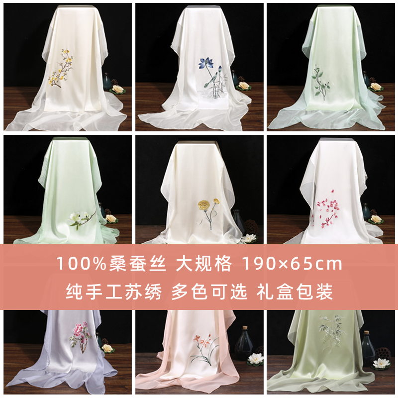 天猫丝巾女真丝春秋桑蚕丝披肩手工刺绣苏州丝绸洋气时尚送礼高端围巾