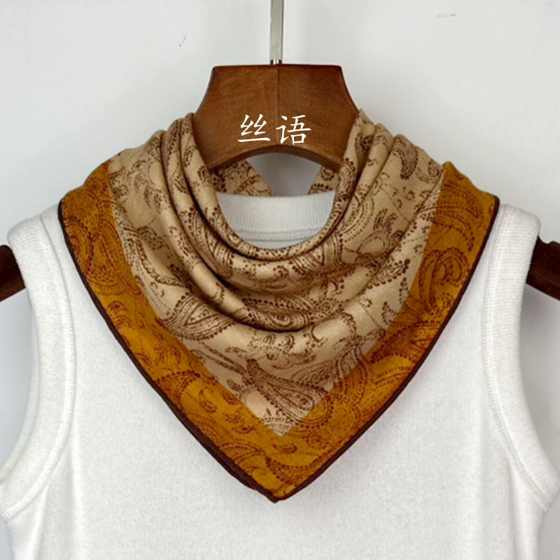 天双面双色真丝丝巾女2025新款中方巾百搭桑蚕丝羊毛混纺秋冬小领巾