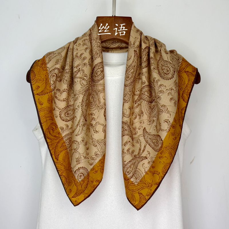 淘宝【真丝羊毛65方巾】双色腰果冬款桑蚕丝羊毛围巾披肩双面两用丝巾