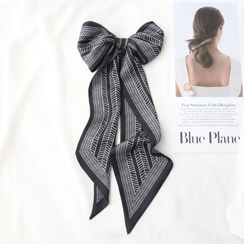 黑白色圆波点长条小丝巾女2024新款高级感百搭配衬衫装饰飘带领巾
