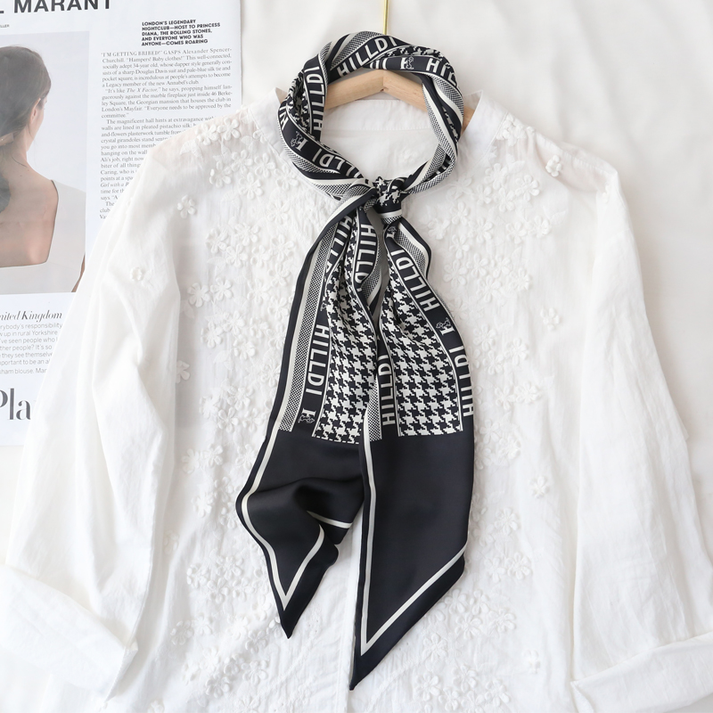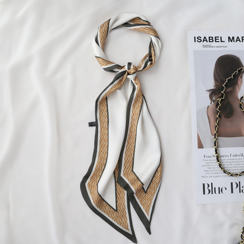 天长条丝巾女2025新款高级感系脖小领巾绑包咖色棕色黑白黑色白色