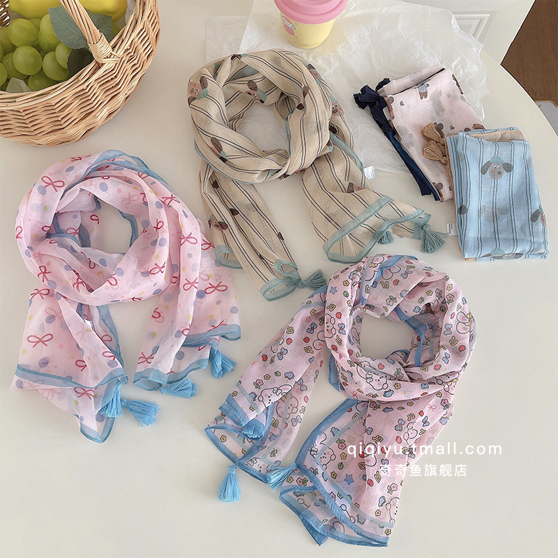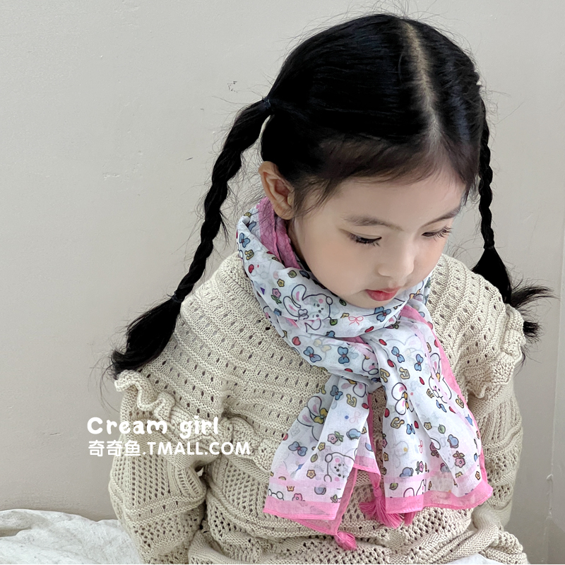 天猫秋季薄款儿童围巾女童长丝巾防风保暖女孩护颈围脖宝宝2025新款潮