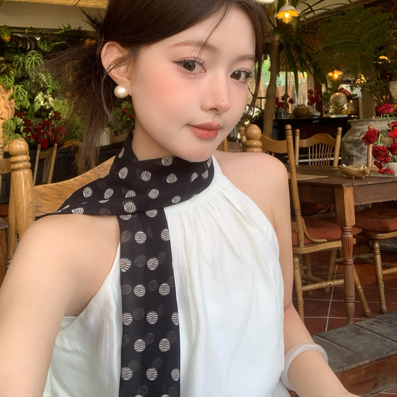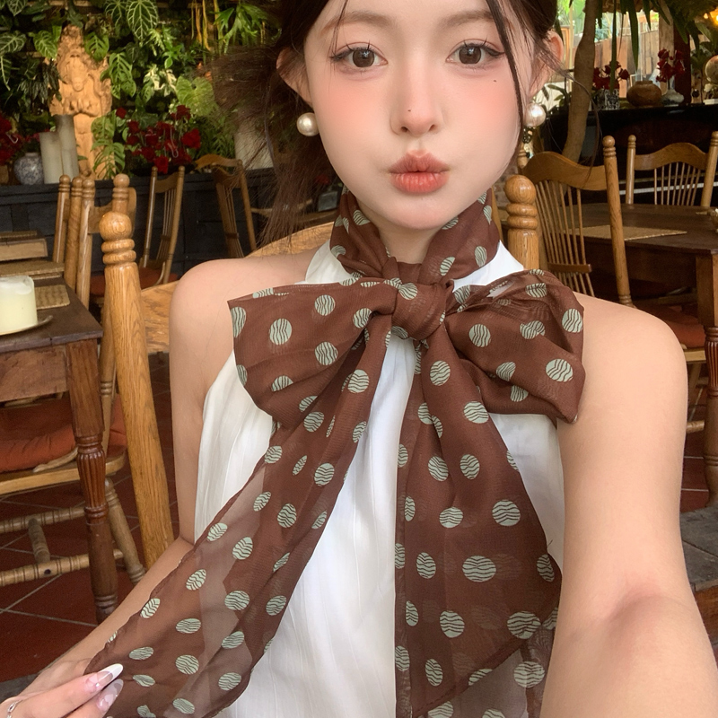 天猫棕色波点丝巾高级感系脖女2025新款发带绑发长条薄款腰带颈饰围巾