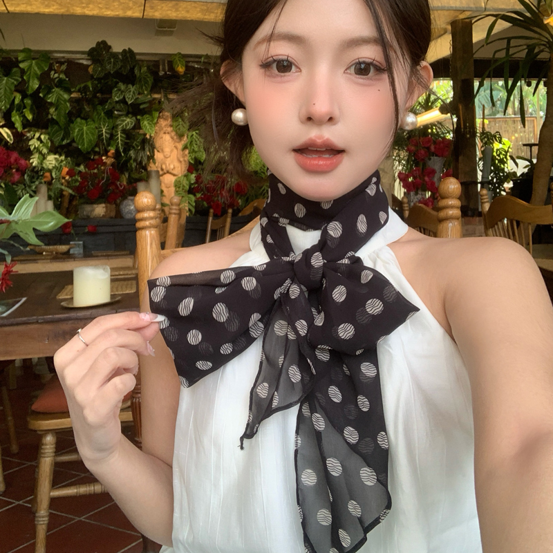 淘「经典永传」黑色波点100%桑蚕丝丝巾薄款百搭长条系脖配饰送礼女