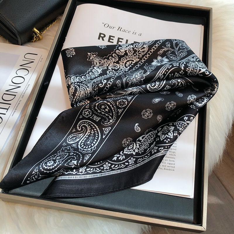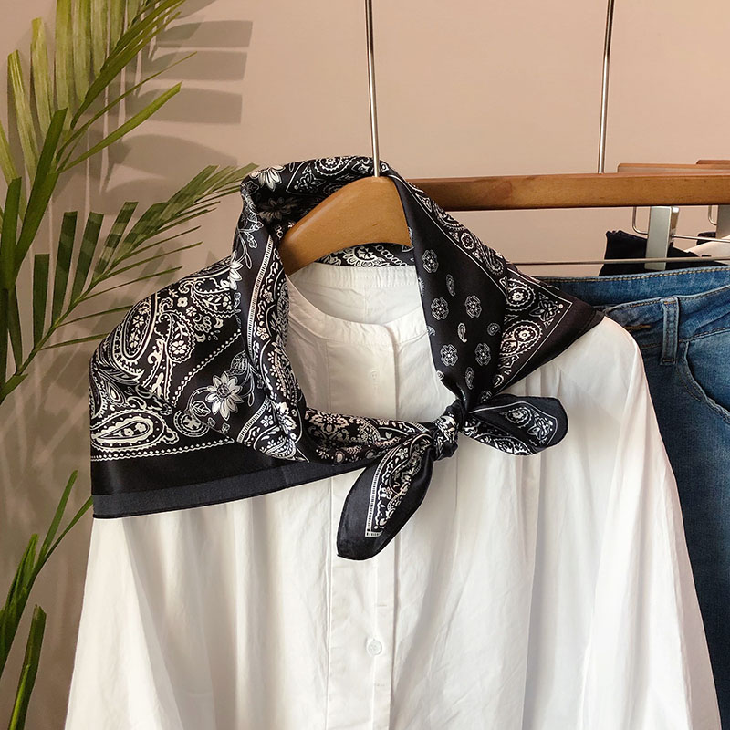 亚马逊53cm四季通用珍珠拼图女士斜纹绸装饰小方巾小领巾飘带围巾