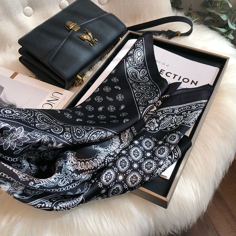 天猫百搭黑色100%桑蚕丝丝巾女2025新款中方巾秋冬高级送礼真丝小领巾