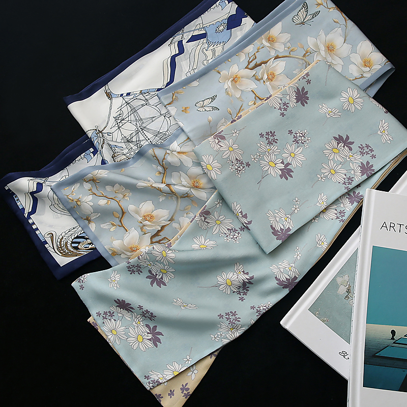 天100%桑蚕丝复古文艺腰果花方巾女真丝小丝巾女百搭配饰春秋高领巾