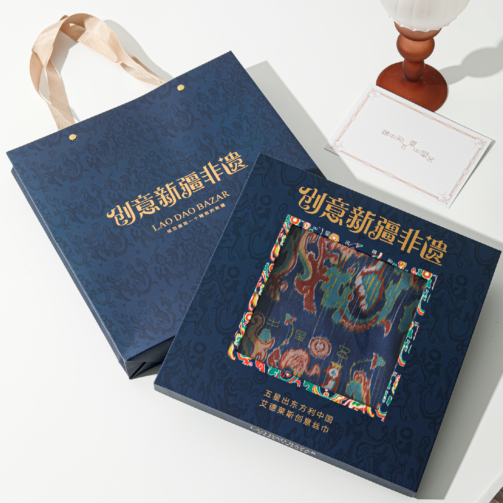 淘宝新疆五星出东方艾德莱斯民族风丝巾围巾礼盒高档旅游伴手纪念巴扎