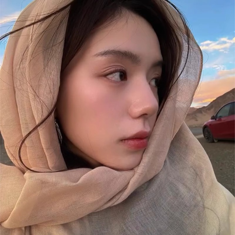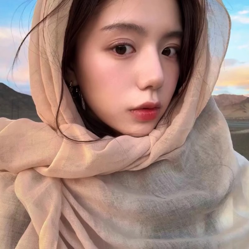 天猫棉麻披肩丝巾夏季女2025新款纯色外搭薄款敦煌旅游头巾红色白色