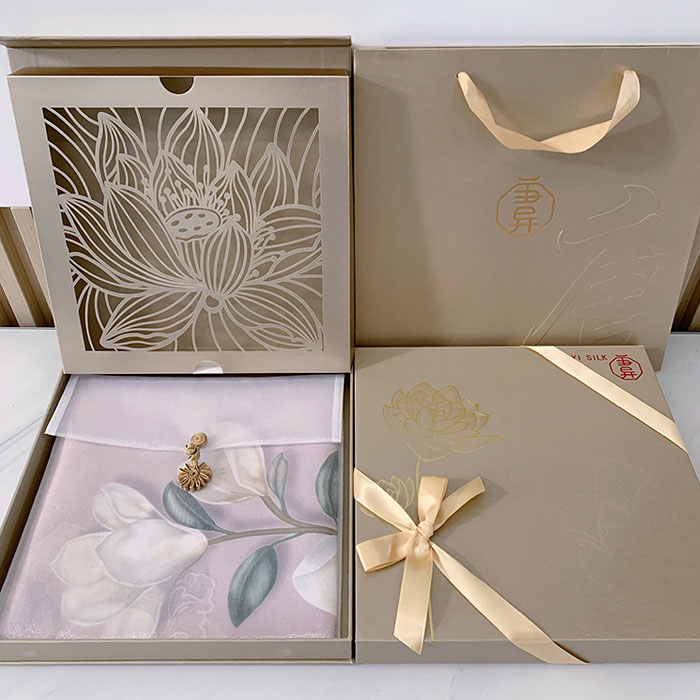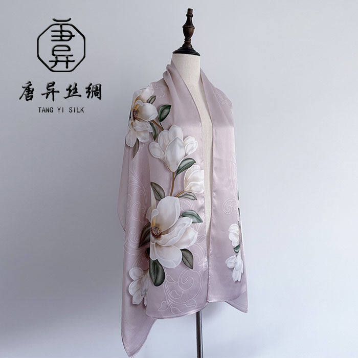 淘宝母亲节送礼玉兰无尘全真丝桑蚕丝丝巾送妈妈辈送老师礼盒