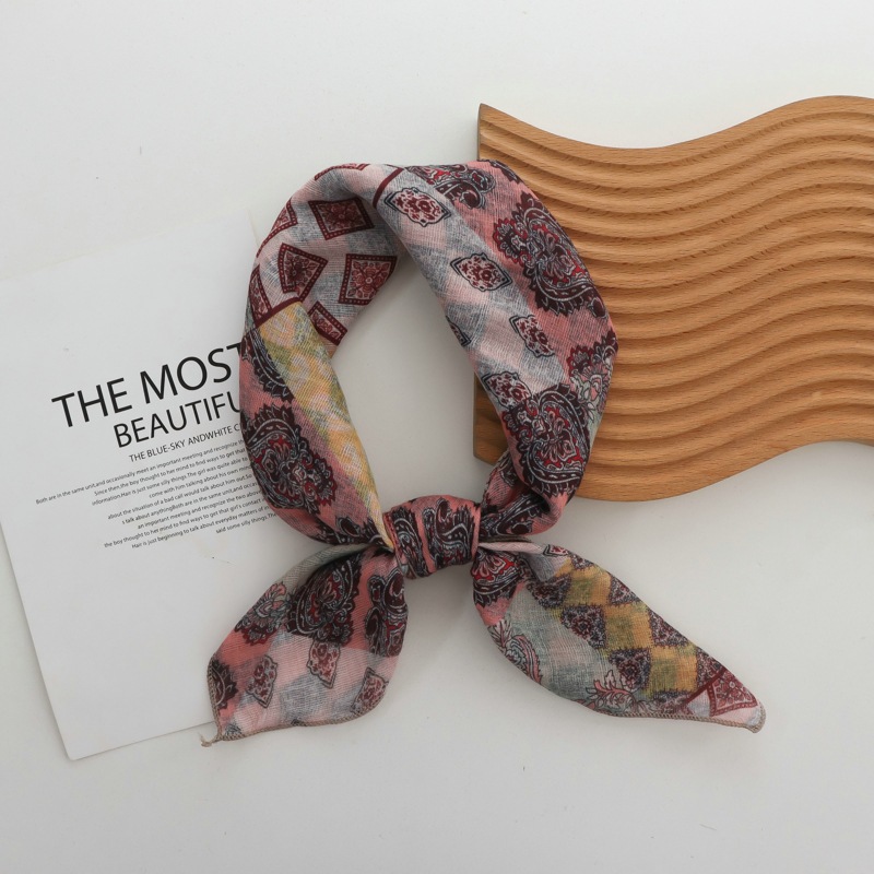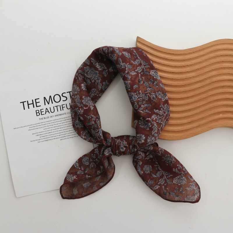 淘宝复古日系碎花百搭方巾春秋季文艺新款小领巾女薄款装饰小丝巾发带
