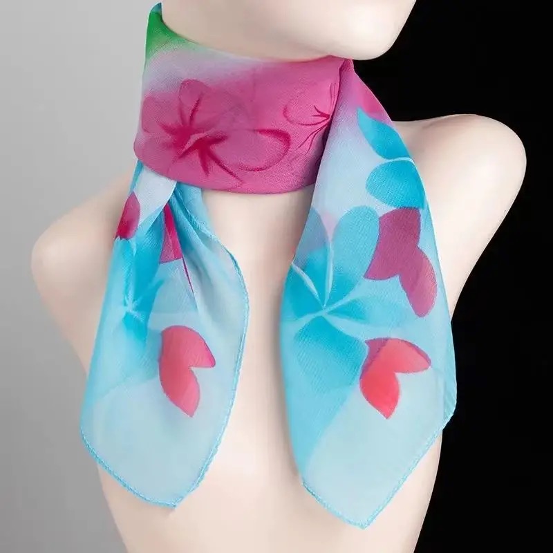 淘宝春秋新款气质雪纺印花小方巾妈妈广场舞围脖领巾丝巾旅游装饰纱巾