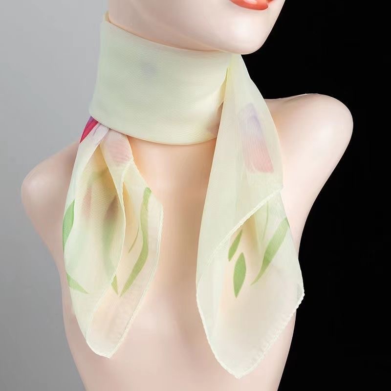 淘仿真丝丝巾女空姐上班工作服百搭气质小方巾职业装工装搭配服饰Y