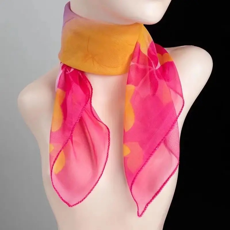 「欢庆之时·彩色烟花」原创100%乔其纱真丝丝巾系脖高级感发饰女