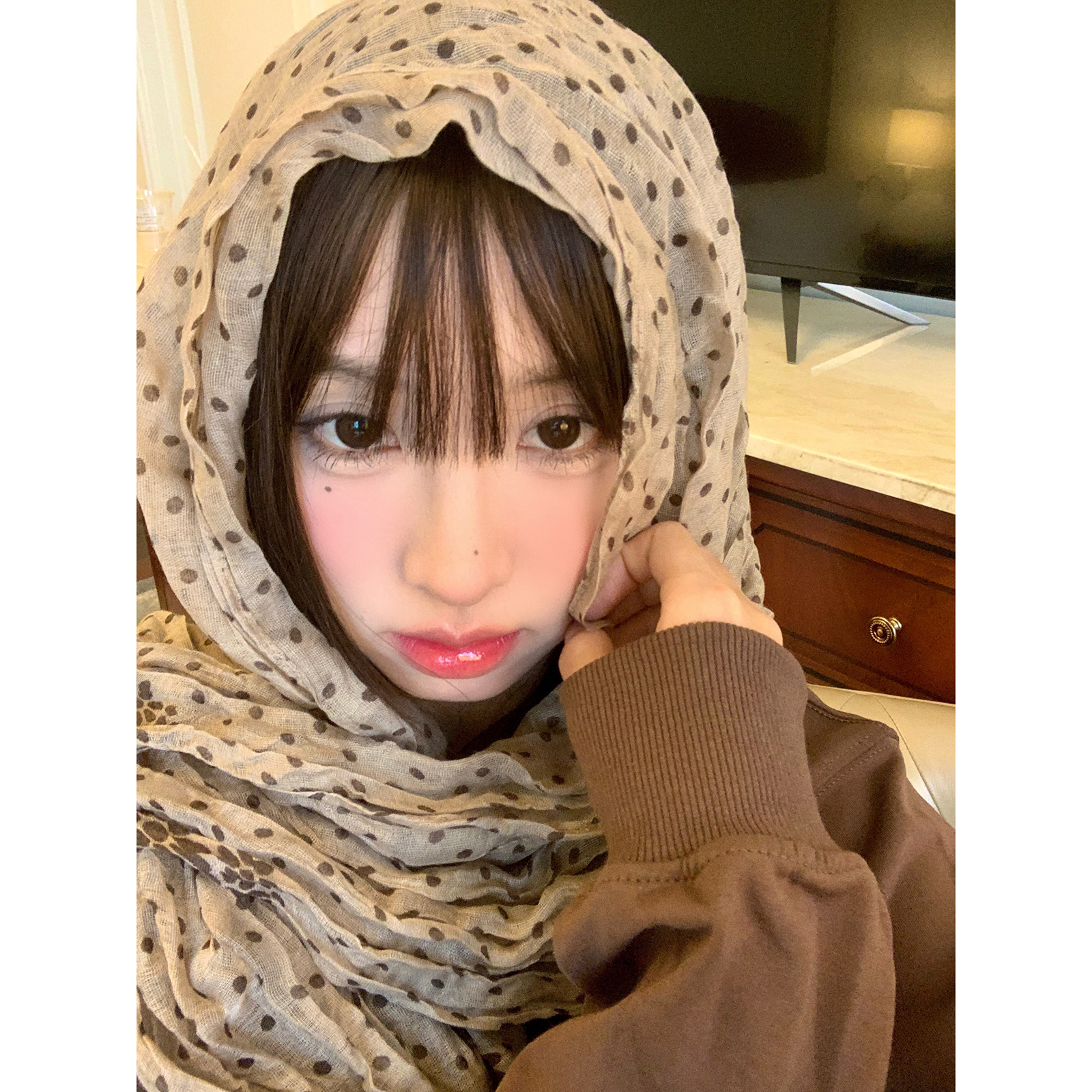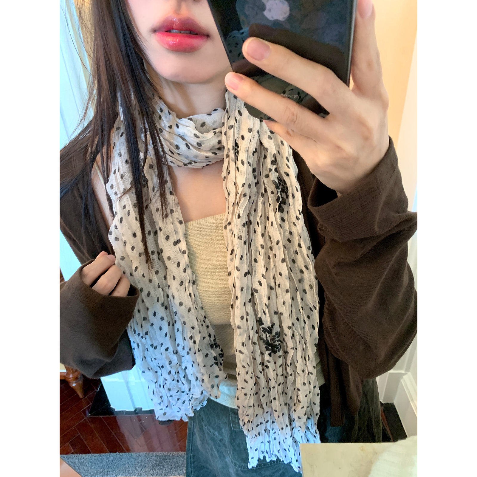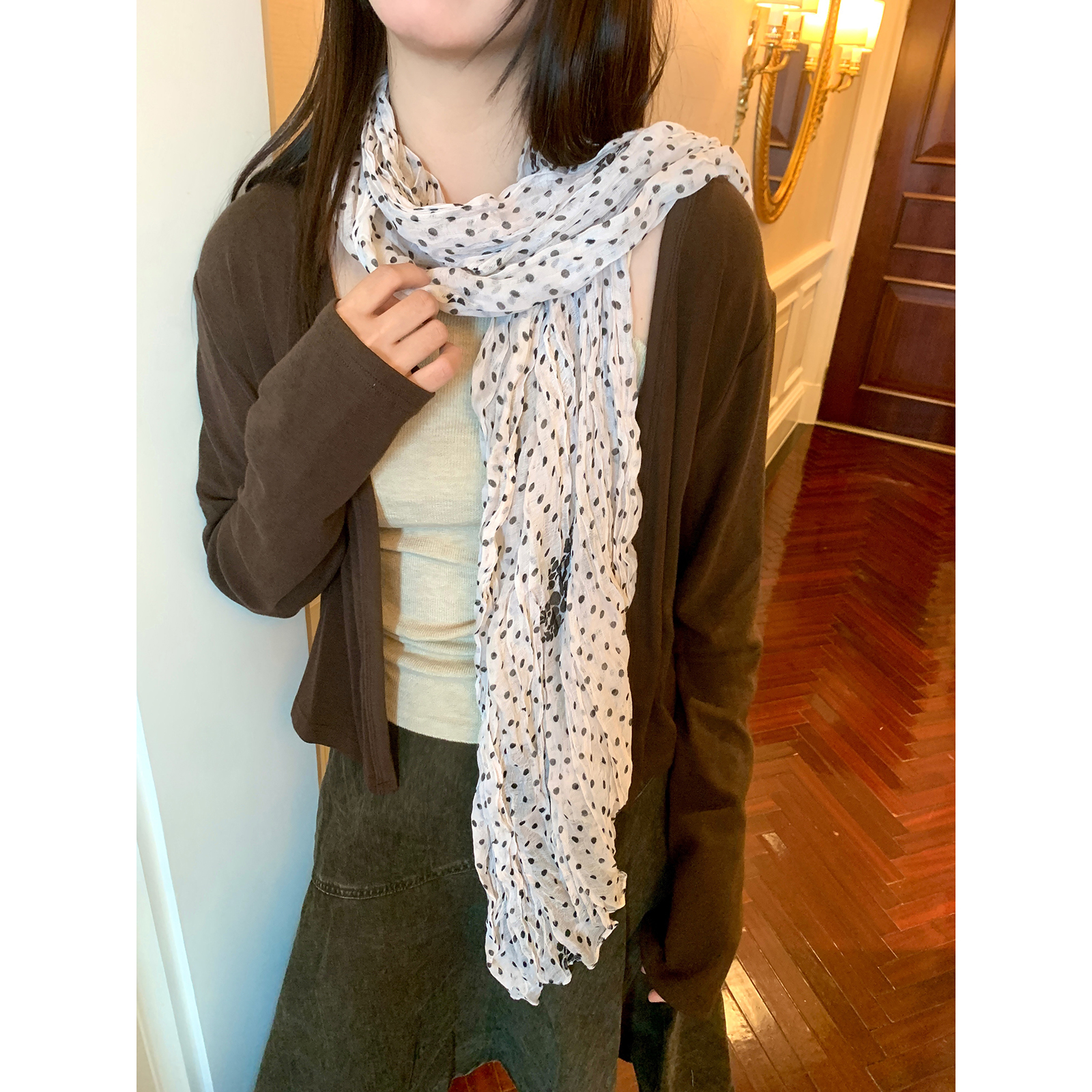 淘宝馨帮帮 多功能护颈披肩撞色薄款围巾复古百搭长条褶皱波点丝巾女