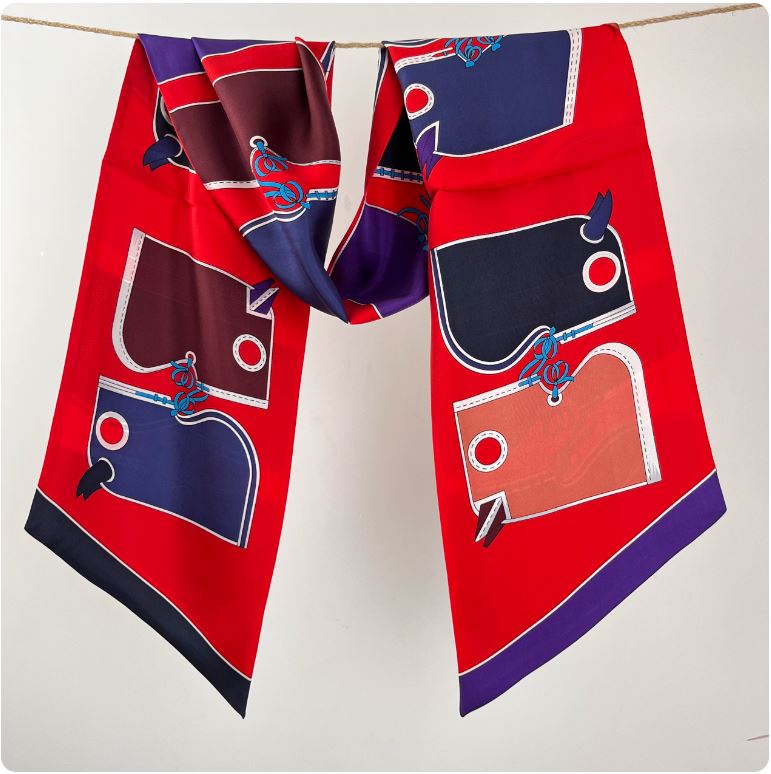淘宝红色皮具马头100桑蚕丝真丝斜纹绸双层双面大飘带真丝丝巾