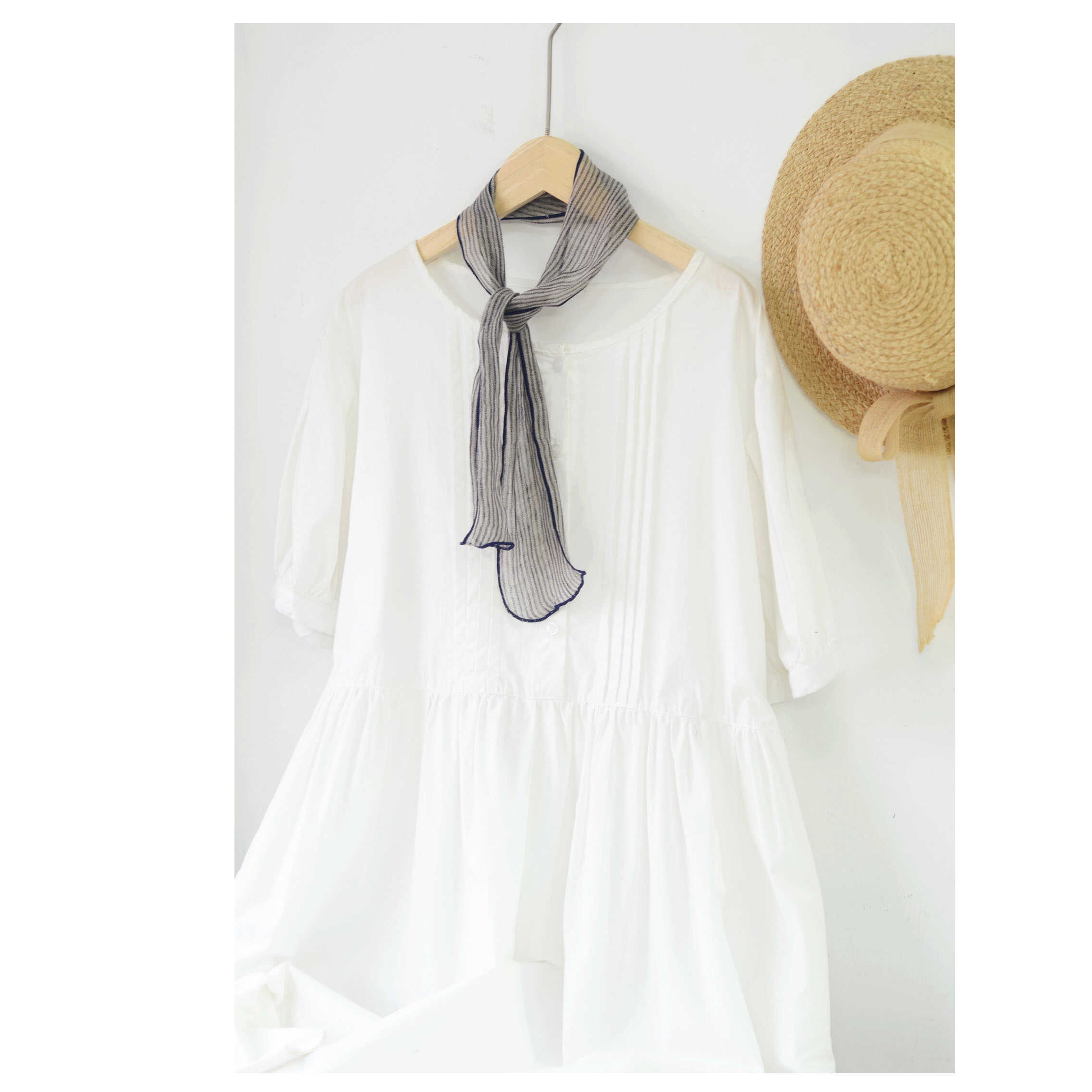 淘宝春夏细小长条亚麻小丝巾装饰护颈条纹小围巾 透气短薄领巾飘带