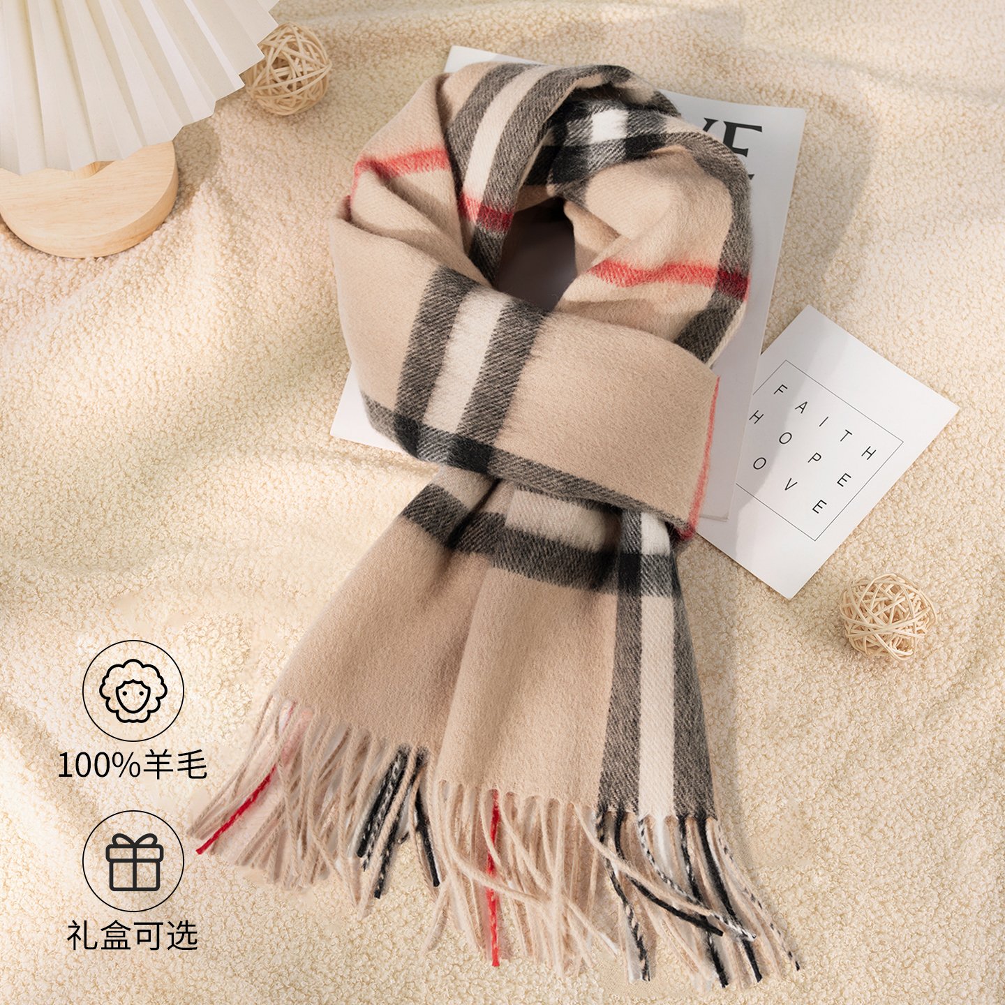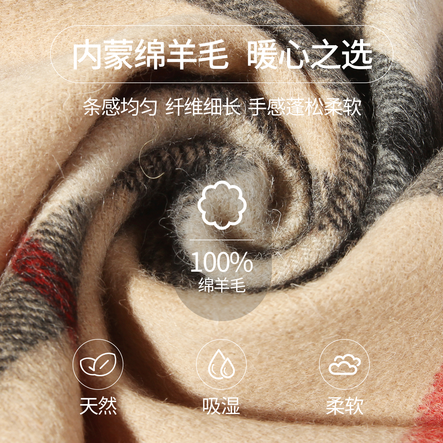 淘宝100%纯羊毛围巾女秋冬新款保暖百搭高级感经典英伦格子围脖披肩