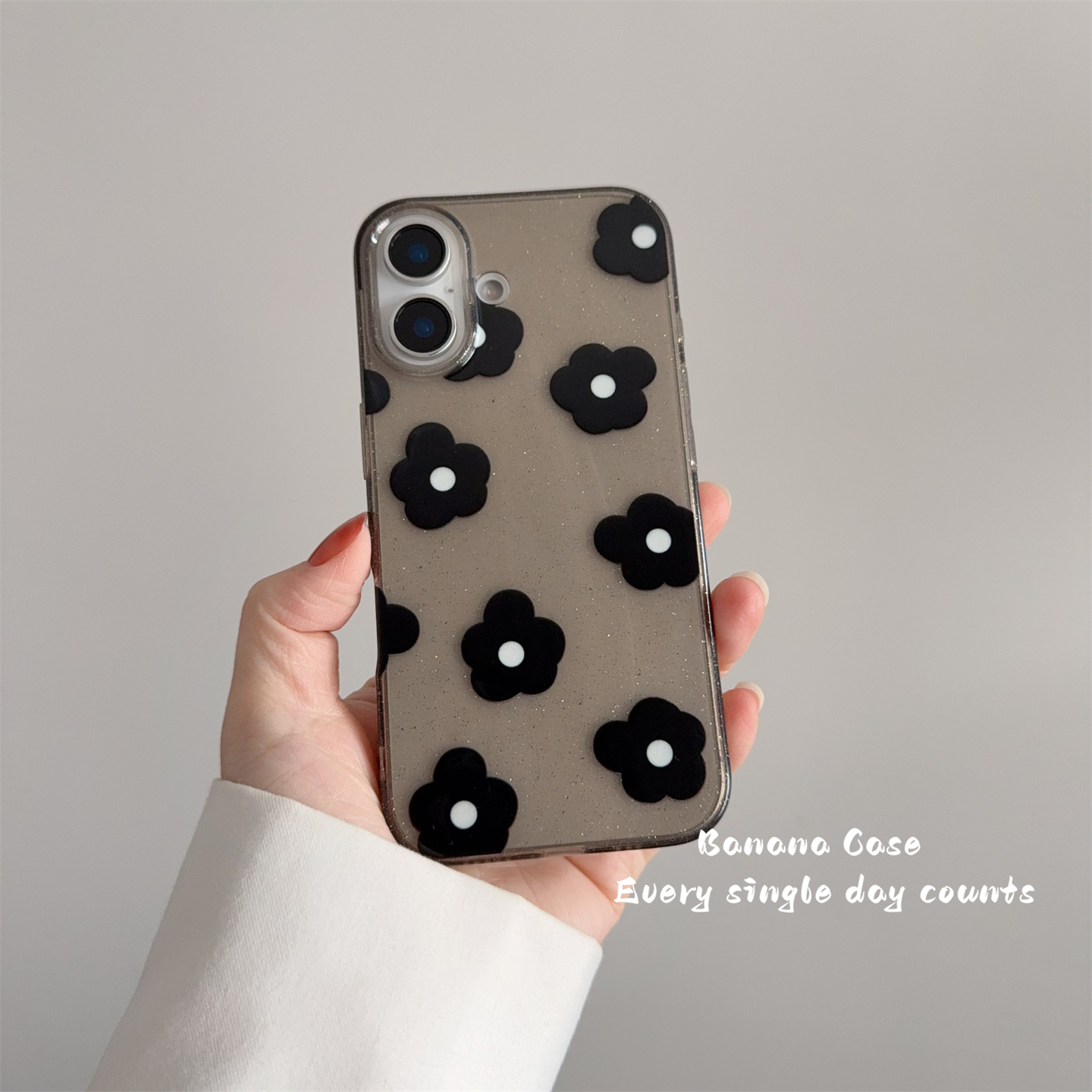 淘宝BananaCase小众ins简约闪粉黑色花朵适用16pro苹果15promax手机壳iPhone14透黑13promax新款防摔13保护套软壳